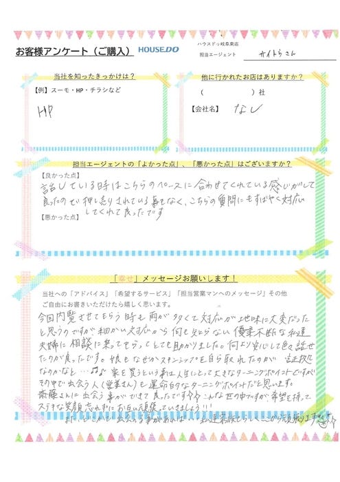 K.K様 この度はご成約までのご担当させていただき誠にありがとうございました! 雨の中でのご案内が多く僕が雨男なのかなと思ってしまうほどでした💦 そんな中でもたくさんの物件に足を運んでいただきありがとうございます! また、ご不明点やお困りな点がございましたらお気軽にご連絡ください!