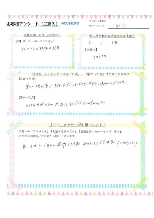 疑問に思ったことをすぐに対応してくださり、不安なく決めることができた。