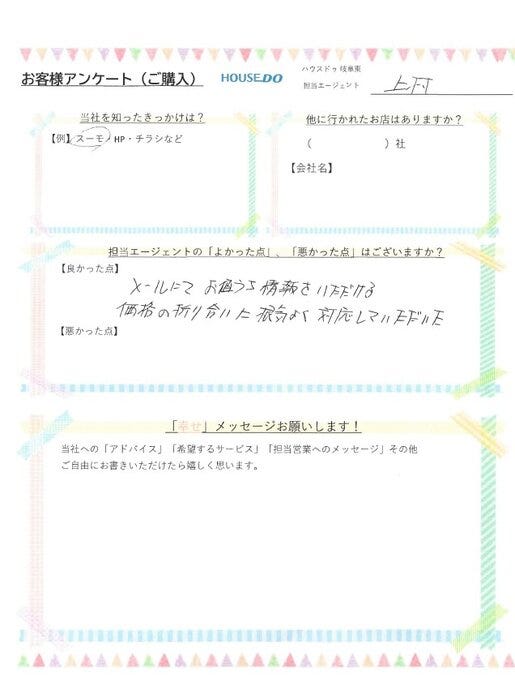 メールにてお値うち情報をいただける。 価格の折り合いに根気よく対応していただいた。